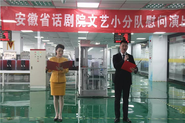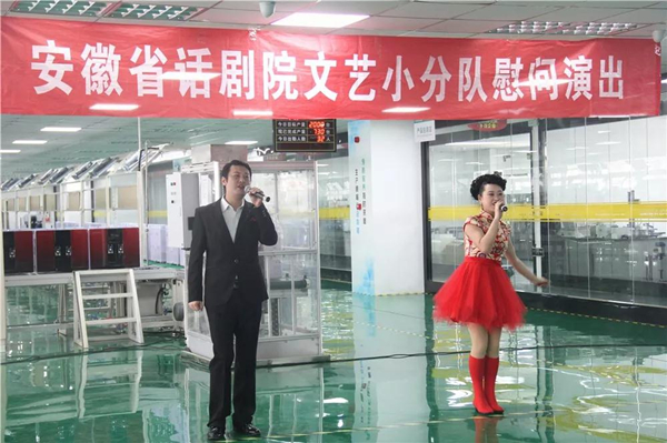 安徽省話劇院成立于1953年,幾代話劇人秉承文藝為人民服務(wù)的宗旨,薪火相傳,不斷開(kāi)拓文化藝術(shù)領(lǐng)域,為我省文化事業(yè)做出了突出貢獻(xiàn),豐富著人民群眾的藝術(shù)生活。為更好地關(guān)心職工群眾生活、加強(qiáng)和創(chuàng)新地區(qū)企業(yè)文化發(fā)展、構(gòu)建和諧勞動(dòng)關(guān)系,安徽省話劇院開(kāi)展“文藝輕騎兵全省巡演”活動(dòng),走進(jìn)廣大基層企業(yè)。2月25日,由安徽省話劇院段曉波院長(zhǎng)、黃磊院長(zhǎng)帶領(lǐng)的巡演文藝小分隊(duì)走進(jìn)榮事達(dá)水工業(yè)集團(tuán)進(jìn)行慰問(wèn)表演,并帶來(lái)了多個(gè)精彩紛呈的藝術(shù)節(jié)目。