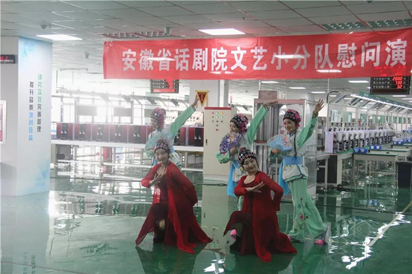 爵士舞《我的新衣》、歌曲《相親相愛(ài)》、朗誦《城市的描繪師》、團(tuán)舞《歡聚一堂》、創(chuàng)意近景魔術(shù)、特色黃梅戲等形式多樣的精彩節(jié)目將傳統(tǒng)藝術(shù)與現(xiàn)代藝術(shù)創(chuàng)新融合,揚(yáng)時(shí)尚蓄古韻,給人以耳目一新的全新視聽(tīng)體驗(yàn),贏得了大家的連連掌聲。值得一提的是,生產(chǎn)制造中心總經(jīng)理孫曉峰參與了黃梅戲的互動(dòng)表演,孫總嘹亮專業(yè)的唱腔,臺(tái)下觀眾無(wú)不為其喝彩。表演過(guò)后,大家仍意猶未盡,津津樂(lè)道。技術(shù)員小王說(shuō)道:“這次表演我感受到了政府和安徽省話劇院對(duì)我們普通職工群眾的關(guān)懷,心里很暖,可以鼓足干勁投入工作了。”
