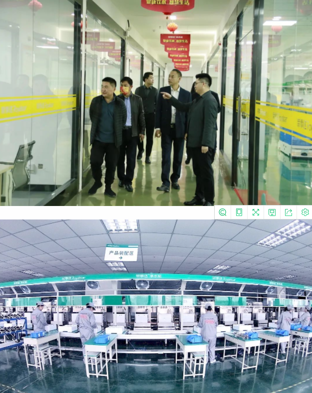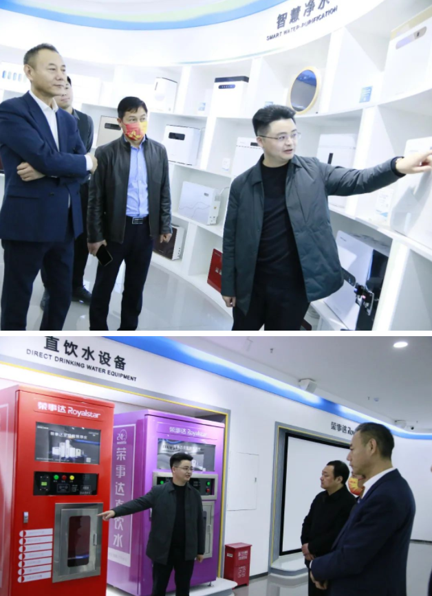 領導一行先后參觀了榮事達商用設備生產(chǎn)車間、榮事達智能家用凈水生產(chǎn)車間和智慧水世界展廳。了解榮事達企業(yè)綜合實力及十大水處理系統(tǒng)具體發(fā)展狀況。