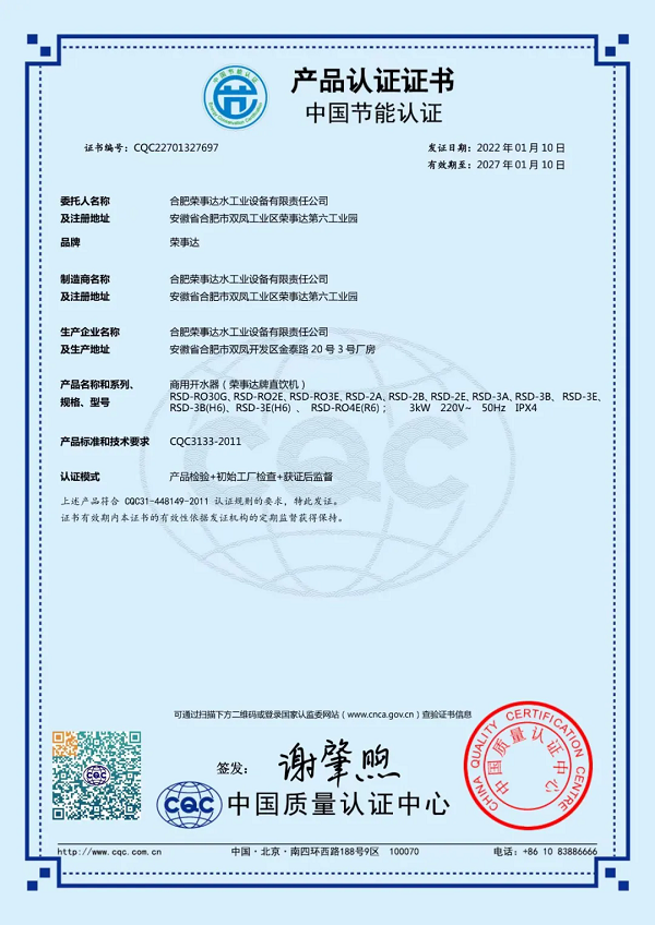 榮事達水工業公司作為飲用水設備進校園推薦試點單位,并被教育部《校園飲水設備運維指南》編委會任命為副主任單位,憑借新設計、新模式、新服務等優勢,在業界樹立了良好的口碑。公司先后承建了包括中國科學技術大學、河南大學、武漢商學院在內的3500多所學校的直飲水工程,為千萬師生提供了優質的飲水服務。