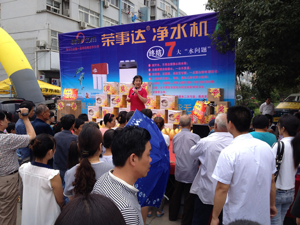 為打開市場、推廣產(chǎn)品,蕪湖管理中心舉辦了多次市場活動。7月5日,榮事達(dá)凈水機(jī)“送健康 進(jìn)萬家”感恩回饋活動在蕪湖市三山區(qū)順利舉行,現(xiàn)場人氣爆棚。消費(fèi)者購機(jī)不但能享受價(jià)格優(yōu)惠,還能砸金蛋抽大獎(jiǎng)?;顒赢?dāng)天,現(xiàn)場成交凈水機(jī)達(dá)34臺,電動車、洗衣機(jī)等大獎(jiǎng)均被抽出。