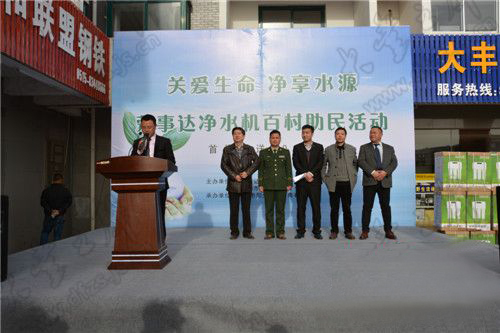 4月17日下午,“關(guān)愛生命 凈享水源”榮事達(dá)凈水機百村助民活動捐贈儀式順利舉行,榮事達(dá)水工業(yè)公司聯(lián)合當(dāng)?shù)亟?jīng)銷商向江蘇省大豐市各村鎮(zhèn)衛(wèi)生院、工商、公安、消防等部門首批捐贈凈水機300臺。