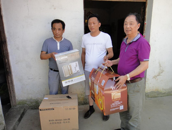 •     近日,榮事達水工業公司愛心慰問團隊攜手安徽省蕪湖縣政府、蕪湖縣宣傳部、蕪湖縣文化館,走進蕪湖縣陶辛鎮倪村防汛指揮中隊、六郎鎮永太鄉養老中心、抗洪英雄王能珍、抗洪模范陶正宇等家庭捐贈榮事達凈水機及日用物資,幫助災民改善生活!