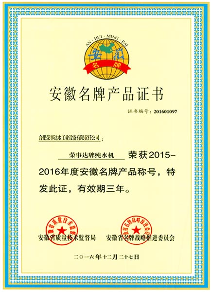 安徽名牌產(chǎn)品證書 -