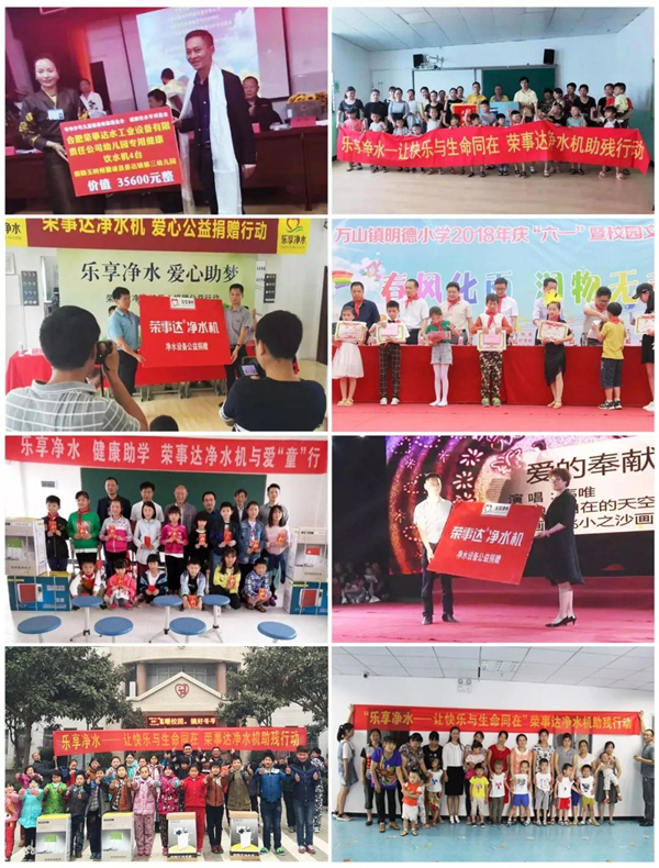 早在2011年,榮事達(dá)就面向全國(guó)開展“樂享凈水?健康助學(xué)行動(dòng)”,截至目前已向安徽、江蘇、陜西、江西、河南、河北等多個(gè)地區(qū)的學(xué)校捐贈(zèng)凈水設(shè)備數(shù)千套。2016年,榮事達(dá)走進(jìn)紅色革命老區(qū)金寨縣,向全國(guó)首個(gè)希望小學(xué)——金寨希望小學(xué)捐贈(zèng)了直飲水設(shè)備,兩千多名師生因此喝上了健康直飲水。之后,榮事達(dá)聯(lián)合金寨希望公益服務(wù)中心及地方公益協(xié)會(huì)共同發(fā)起“給山區(qū)孩子一杯水”——援建金寨中小學(xué)凈水設(shè)備公益活動(dòng),榮事達(dá)援建400多套直飲水設(shè)備,幫助全縣的學(xué)校解決了飲水難題。該公益項(xiàng)目引發(fā)了社會(huì)各界熱烈關(guān)注,被評(píng)為“安徽省十佳學(xué)雷鋒志愿服務(wù)項(xiàng)目?jī)?yōu)秀典型”。立責(zé)于心,健康助學(xué),在公益這條路上,榮事達(dá)未來將繼續(xù)推進(jìn),為更多校園送去安全水,盡心呵護(hù)孩子們健康成長(zhǎng)。