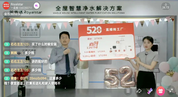 直播中,榮事達主播團隊向觀眾們分享了榮事達RO冷熱一體機以及全屋凈水系列產品,并對產品性能品質進行了深度講解。此次直播活動的重磅套餐——榮事達全屋智慧凈水系統,基于個性化家庭定制場景,涵括了前置過濾器、中央軟水機、反滲透凈水機、速熱飲水機、凈飲一體機等系列產品,完美實現用戶家庭直飲、洗滌、洗浴、燒飯、洗菜、衛生等全屋凈水覆蓋,有效杜絕各類有害物質侵襲,全方位呵護家庭飲用水健康。榮事達高品質、高顏值的明星產品一經推出,吸引了直播間觀眾紛紛留言詢價。直播間超低折扣、精品爆款限量秒殺、預訂讓利以及好禮免費送等福利更是讓參與活動的消費者熱情高漲,對榮事達的“良心讓價”好評如潮。