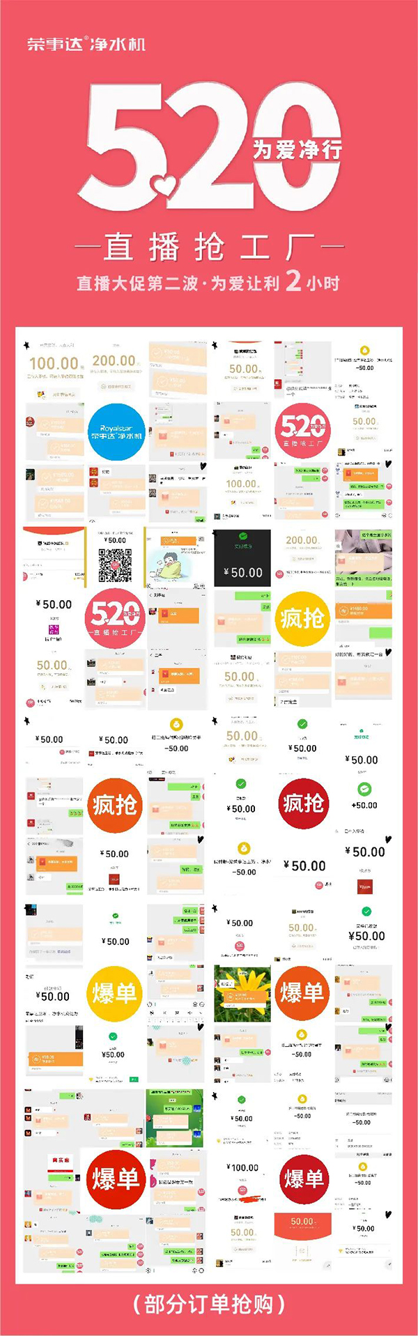 •     花樣寵粉,實力帶貨。5月20日晚,榮事達“520為愛前行·直播搶工廠”活動完美收官。短短2個小時的直播,干貨滿滿,福利多多,互動活動精彩紛呈,吸引了大批粉絲圍觀,累計在線觀看量超過了28.7萬人次,點贊量超過12.4萬次,累計線上訂單超22000單,再次刷新紀錄。