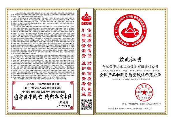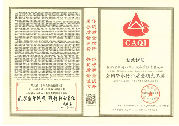 • 誠信315|熱烈祝賀榮事達榮獲“全國產品和服務質量誠信示范企業”“全國質量信得過產品”“全國凈水行業質量領先品牌”等多項榮譽