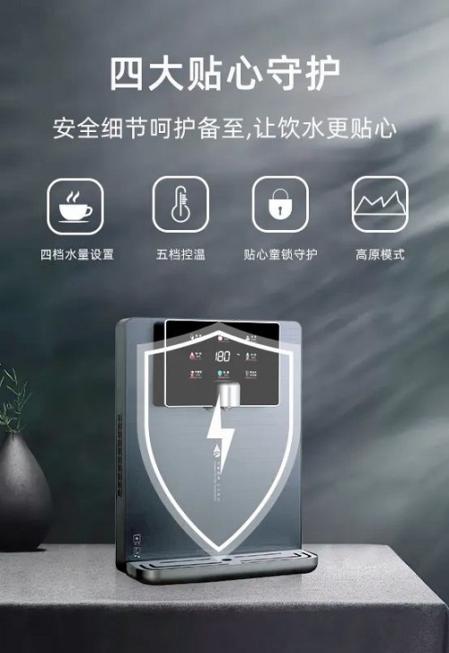 四大貼心守護(hù),讓飲水更貼心。四檔水量設(shè)置,定量取水,無(wú)需等待;五檔控溫,專(zhuān)溫專(zhuān)飲,給您最適宜的溫度,滿(mǎn)足多種需求;貼心童鎖守護(hù),童鎖鍵預(yù)防寶寶誤觸,避免安全隱患導(dǎo)致?tīng)C傷,安全細(xì)節(jié)呵護(hù)備至;內(nèi)置高原模式,適應(yīng)各類(lèi)海拔高度,充分考慮高海拔地區(qū)家庭飲水需要。