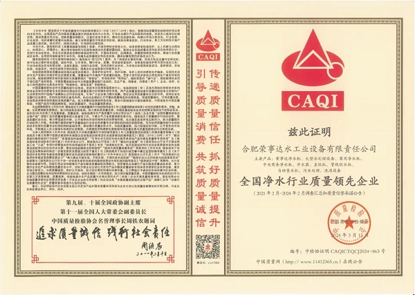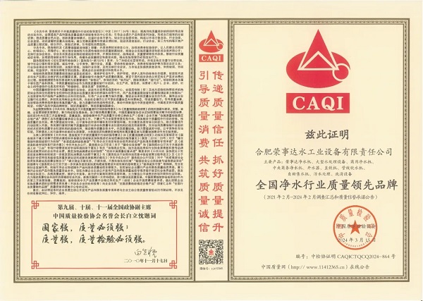 在由中國質(zhì)量檢驗協(xié)會主辦的2024年“3·15”產(chǎn)品和服務(wù)質(zhì)量誠信承諾的主題活動中,榮事達(dá)水工業(yè)公司憑借卓越的產(chǎn)品品質(zhì)及良好的社會形象,獲得協(xié)會以及權(quán)威專家的一致認(rèn)可,榮膺 “全國產(chǎn)品和服務(wù)質(zhì)量誠信示范企業(yè) ”“全國凈水行業(yè)質(zhì)量領(lǐng)先企業(yè)”“全國凈水行業(yè)質(zhì)量領(lǐng)先品牌”“全國產(chǎn)品和服務(wù)質(zhì)量誠信品牌”“全國質(zhì)量檢驗穩(wěn)定合格產(chǎn)品”“全國質(zhì)量檢驗信譽保障產(chǎn)品”“全國消費者質(zhì)量信譽保障產(chǎn)品 ”多項榮譽。