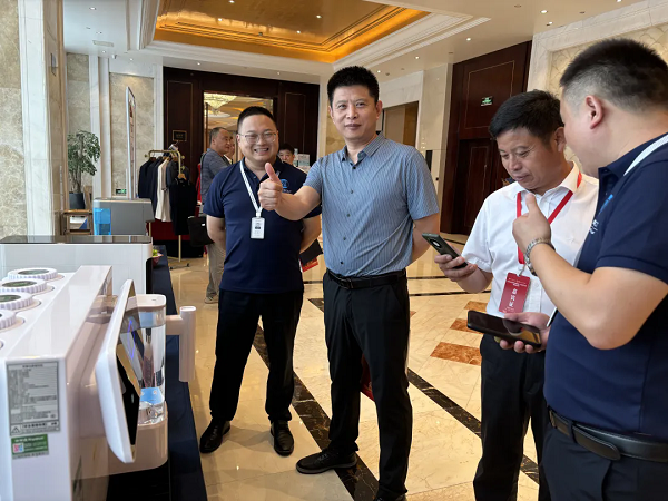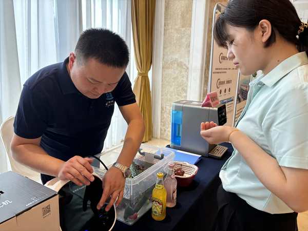 與會嘉賓紛紛駐足,親自體驗了榮事達(dá)冷熱一體機(jī)、大通量凈水機(jī)以及富氫水機(jī)等高科技產(chǎn)品。特別是當(dāng)大家品嘗到經(jīng)榮事達(dá)食材凈化機(jī)殺菌處理后的水果后,都紛紛表示口感絕佳,與僅用清水清洗的水果相比,更加清爽可口。