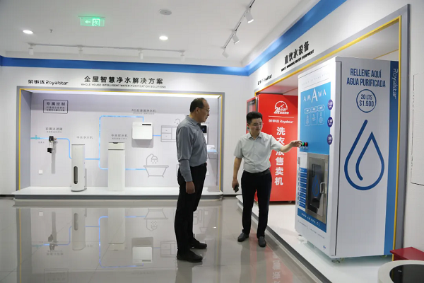 此次考察,特別聚焦于集團順應新基建趨勢,結合物聯網、大數據和云計算技術,首創的社區智能凈水工廠項目,領導一行全面而深入地了解智能凈水工廠在社區新場景下的設計思路、工程建設、運營策略以及合作模式等。從設備的智能制造,到直飲水工藝流程的精細管理,再到智能管理平臺的高效運營,這一系列環節構成了集團所打造的一體化、全方位、智能化的凈水產業鏈。項目凸顯了集團在新質生產力背景下所做出的創新突破,致力于追求可持續的高品質發展新方向。